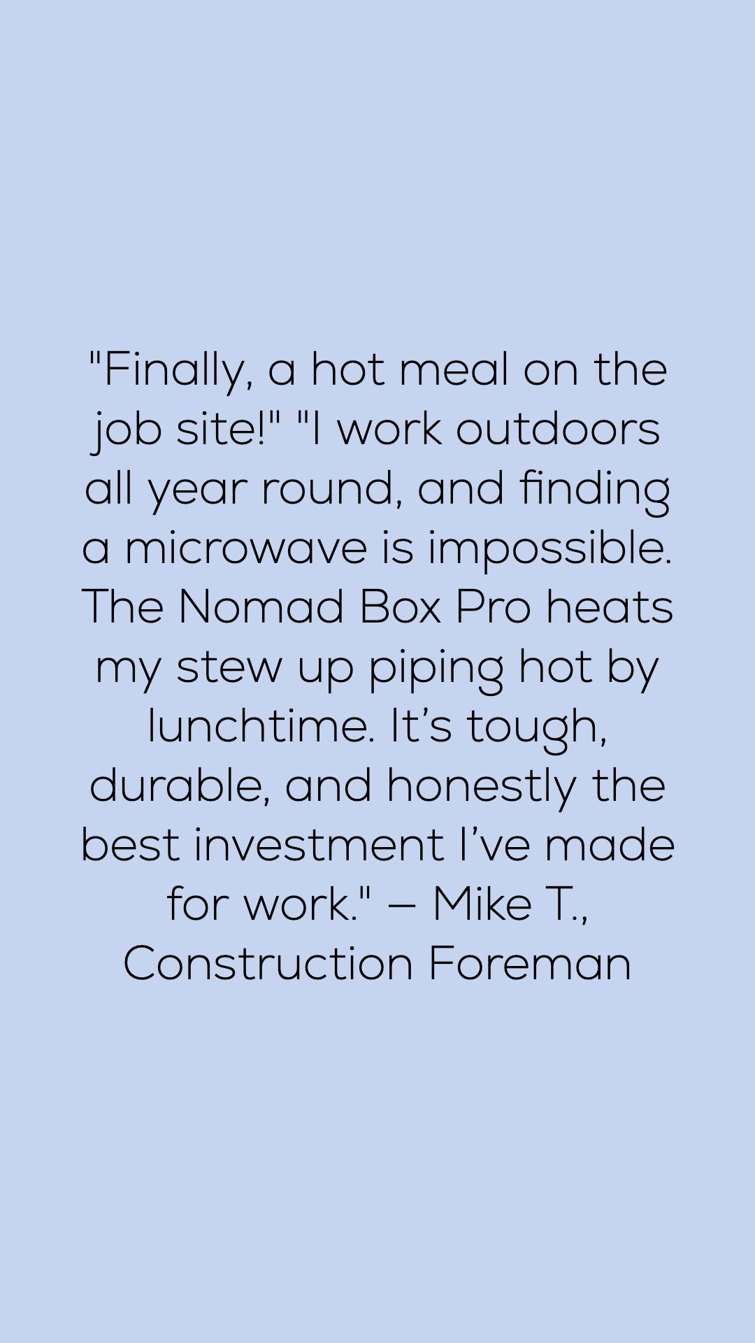 - Total Wireless Freedom: No more searching for outlets or waiting in microwave queues—our high-capacity battery heats your meal anywhere from the office to the job site.