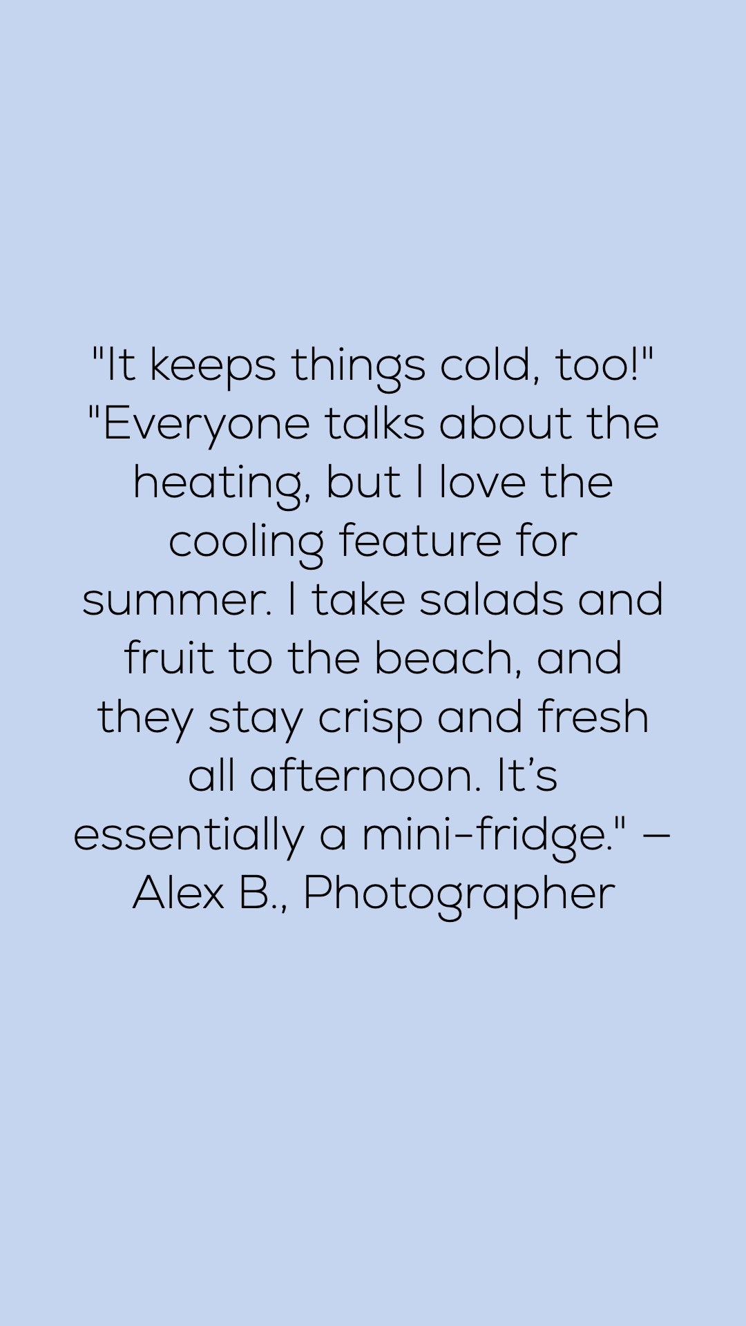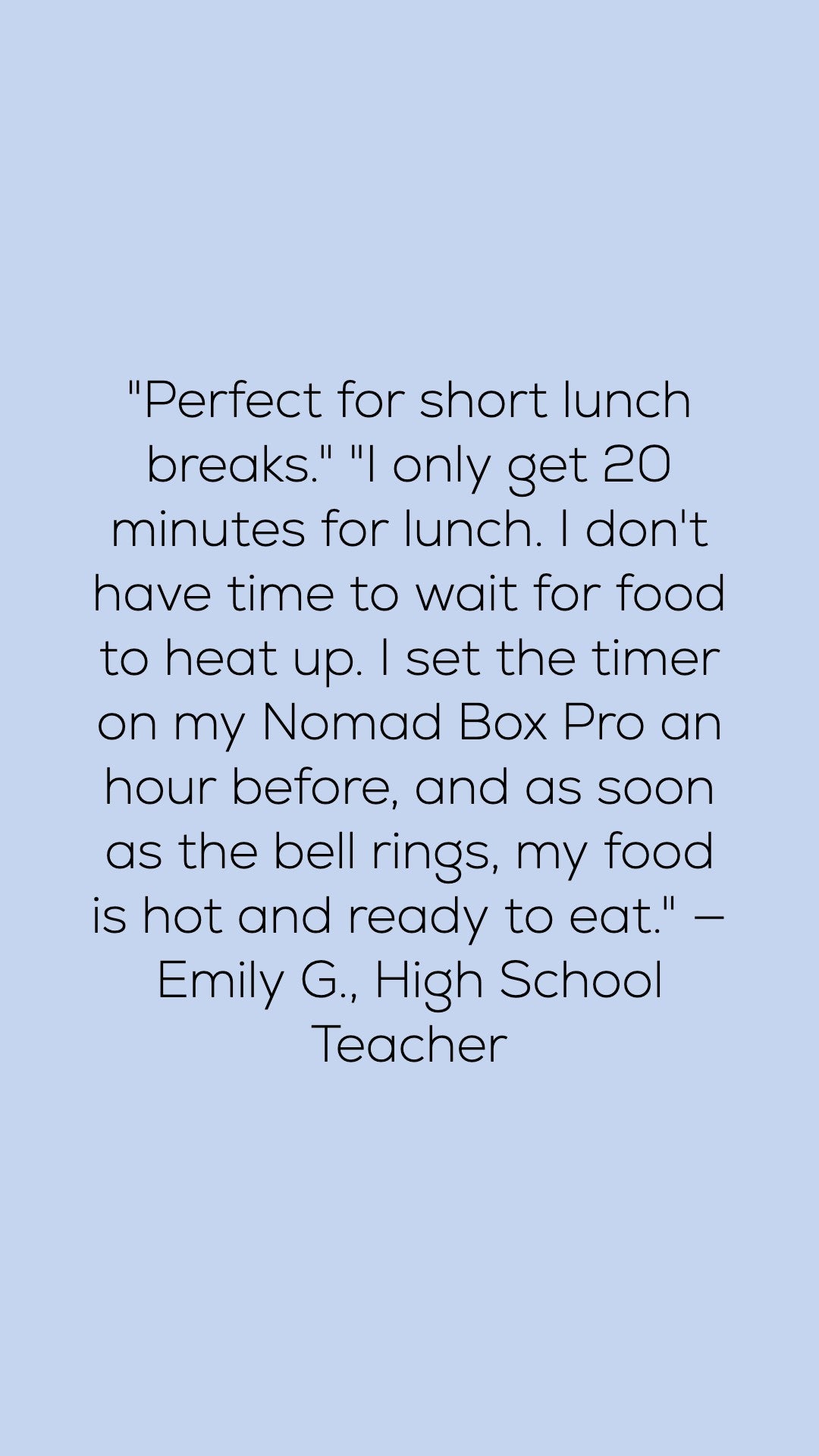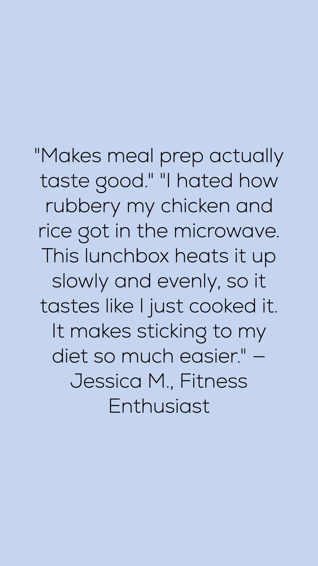 Experience total cord-free freedom with a lunchbox that heats your meal to a perfect 65°C anywhere, anytime, in under 30 minutes.